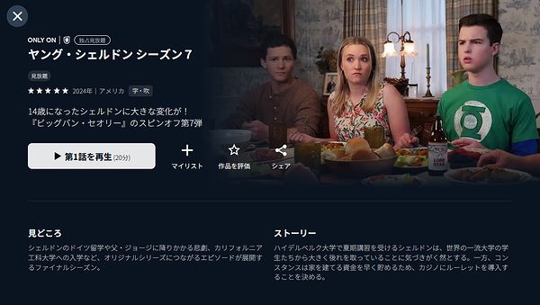 2026年2月現在「ヤング・シェルドン」シーズン1~7はU-NEXTで見放題配信中です。